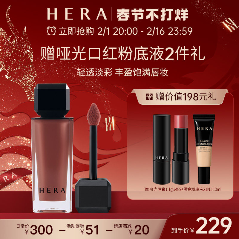 券 51元销量1000Hera赫妍方管唇釉魅感裸透镜面保湿唇彩422柔光润泽高级显色462
