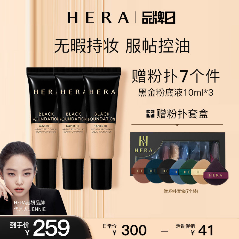 券 121元销量10Hera/赫妍黑金粉底液持久不脱妆遮瑕保湿油皮亲妈10ml*3支装