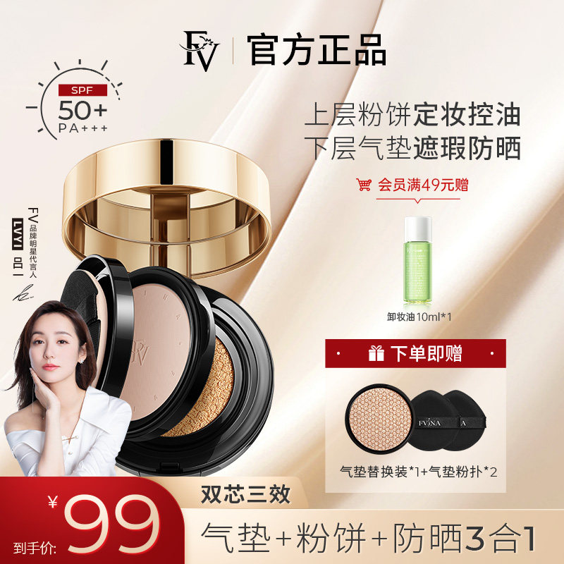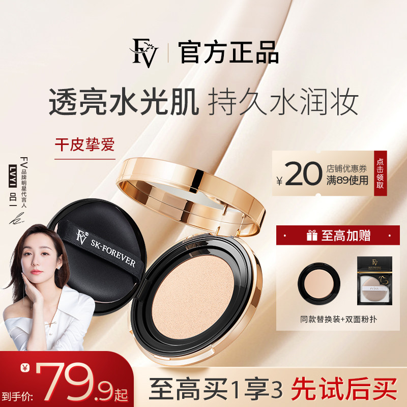 券 20元销量1000FV双层气垫遮瑕持久不脱妆秋冬保湿养肤bb霜粉底液定妆粉饼二合一