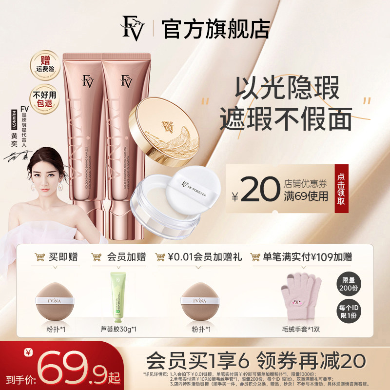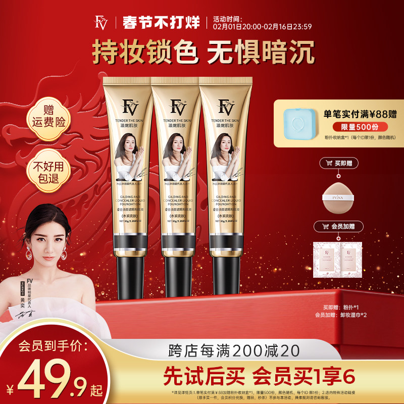 券 20元销量1000FV鎏金焕颜粉底液混合皮自然服帖亮肤轻薄底妆适合女学生专用平价