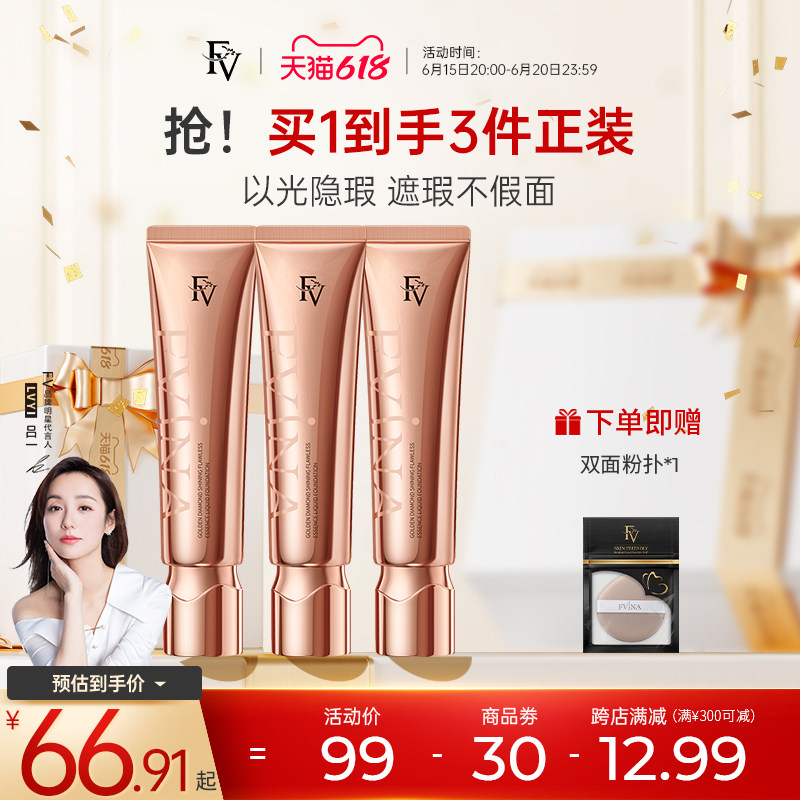 券 20元销量1000FV金钻遮瑕粉底液持久不脱妆控油混油皮干皮油皮保湿女官方正品