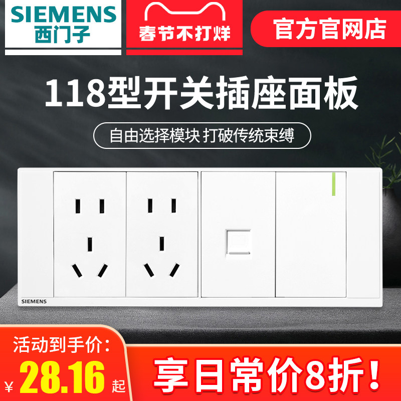 券 2元销量10西门子118型开关插座自由组合一开五孔10十孔15十五孔带网线插座