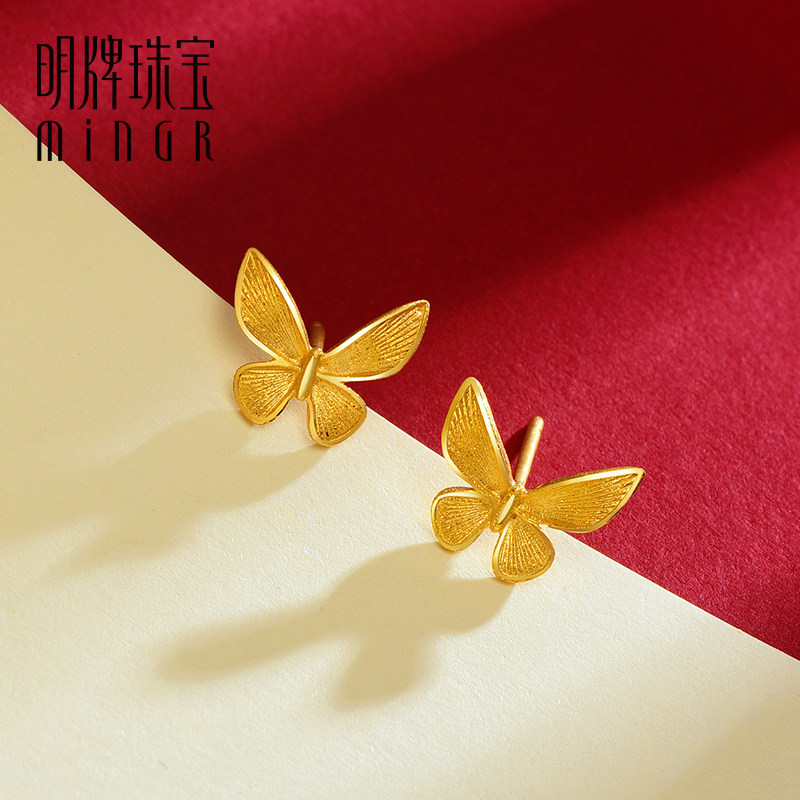 券 10元销量90明牌珠宝足金耳钉 黄金蝴蝶福迭而至婚嫁蝴蝶耳饰AFH0147 计价