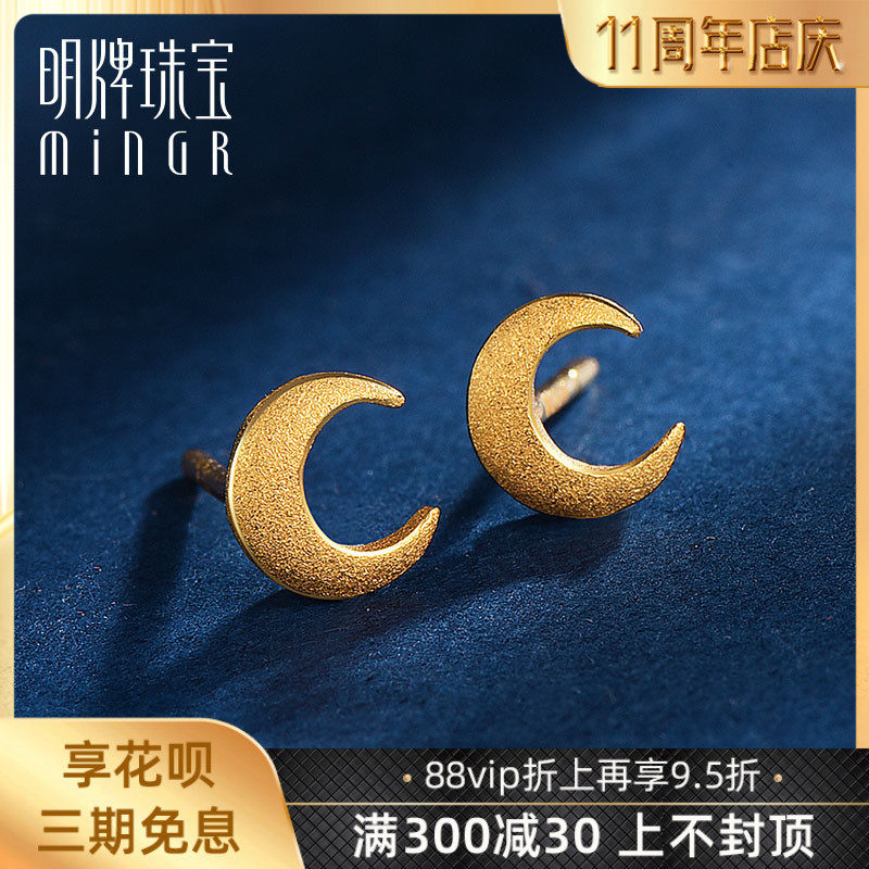 券 10元销量95明牌珠宝黄金耳钉 足金月亮心悦耳钉时尚珠宝耳饰简约女 AFH0060