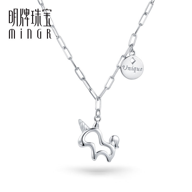 券 100元销量6明牌珠宝铂金项链PT950可爱独角兽套链锁骨链女款正品礼物BFR0084