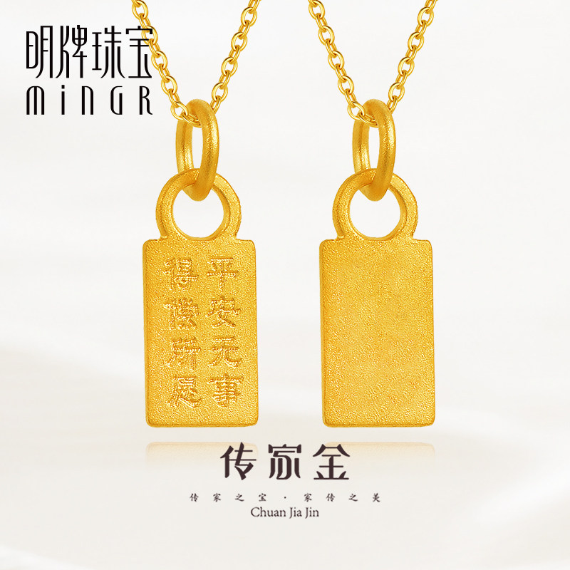 券 50元销量1明牌珠宝足金吊坠 古法传家金传承平安无事黄金项坠计价AFC0537