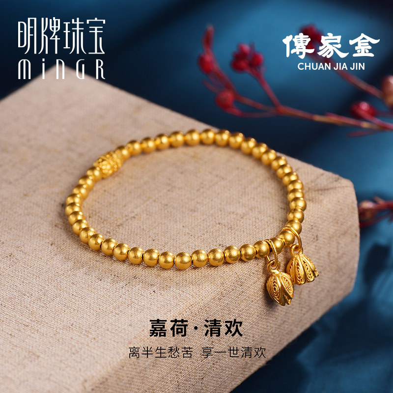 券 200元销量54明牌珠宝古法黄金手串 嘉荷传家金莲蓬荷苞转运珠手链串珠AFK0191