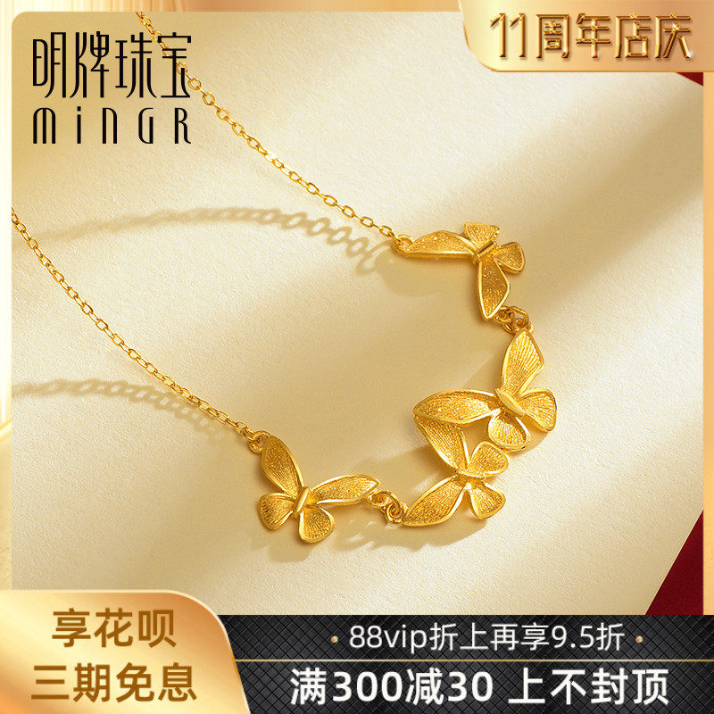 券 50元销量89明牌珠宝足金项链 黄金蝴蝶福迭而至婚嫁蝴蝶套链AFB0139 计价