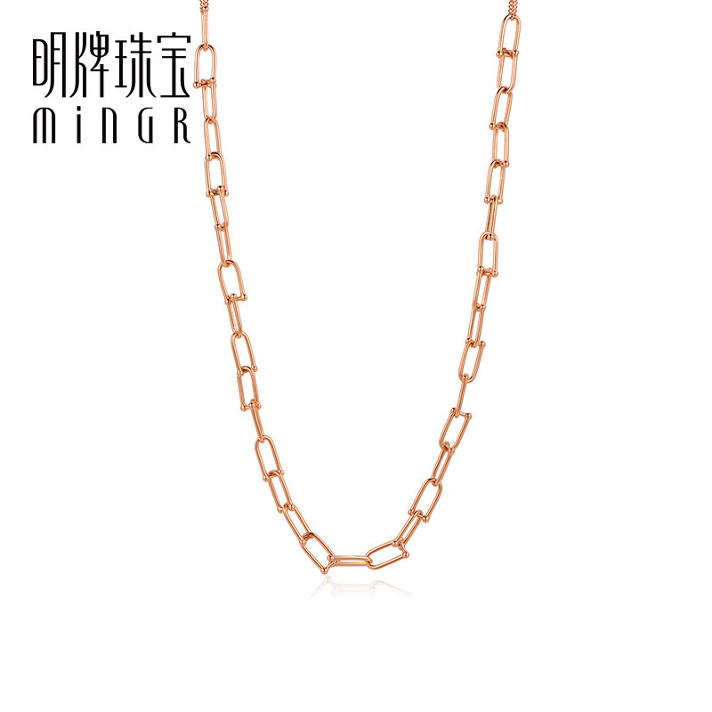 券 10元销量100明牌珠宝黄金项链 足金女款细密O字链百搭锁骨链 AFR0017长款项链