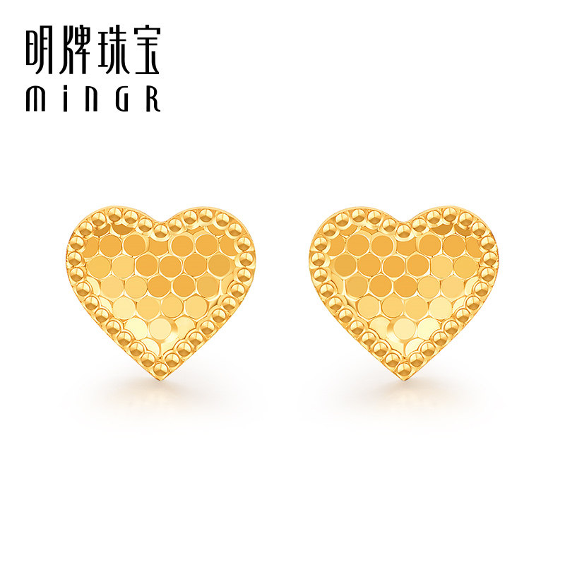 券 10元销量85明牌珠宝5G黄金心形耳饰 足金爱心小圆点耳钉简约女士耳插AFH0256