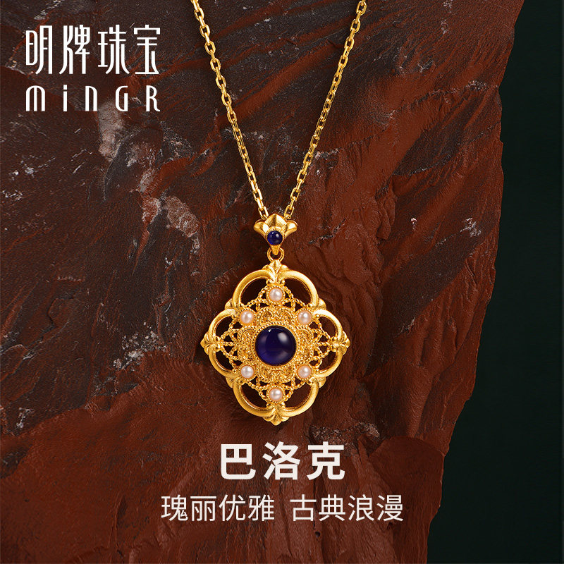 券 200元销量53明牌珠宝黄金复古项链 足金欧式风巴洛克珍珠套链奢华首饰AFB0287