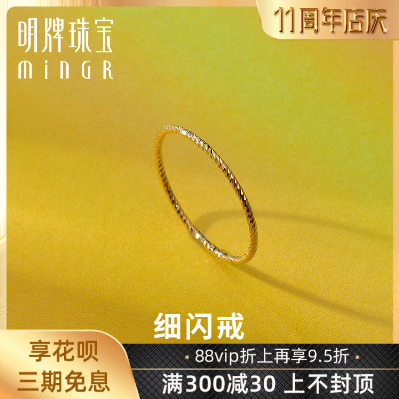 券 10元销量91明牌珠宝足金简约戒指 黄金细闪戒足金圆满素圈女戒金戒指AFM0219