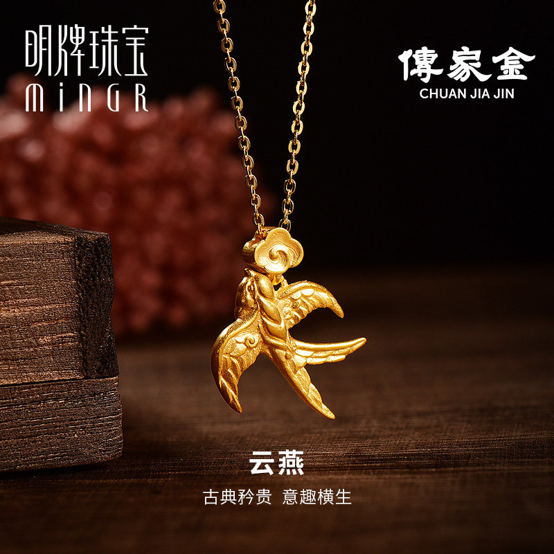 券 50元销量100明牌珠宝古法黄金套链 传家金平安喜庆云燕足金项链礼物AFB0205