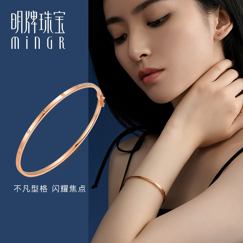 券 50元销量8明牌珠宝18K金手镯印心玫瑰金首饰正品t小红书同款礼物CSI0028