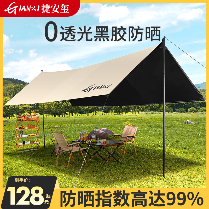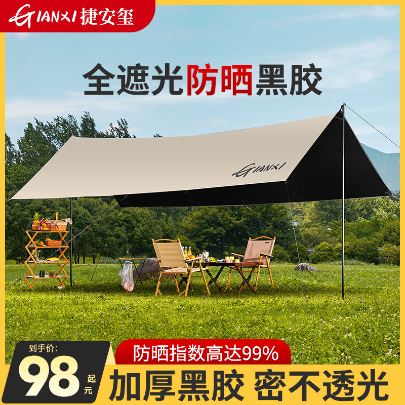 券 30元销量500户外天幕帐篷便携式黑胶涂银遮阳棚防晒防雨凉棚全套露营用品装备