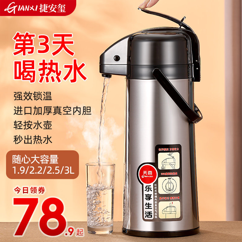 券 30元销量1000按压式热水壶保温瓶暖壶气压式热水瓶大容量家用茶瓶开水瓶保温壶