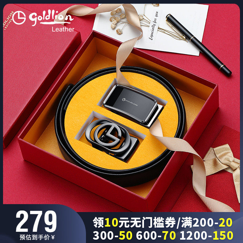 券 50元销量100金利来皮带男真皮新款正品自动扣腰带牛皮腰封商务男士裤带