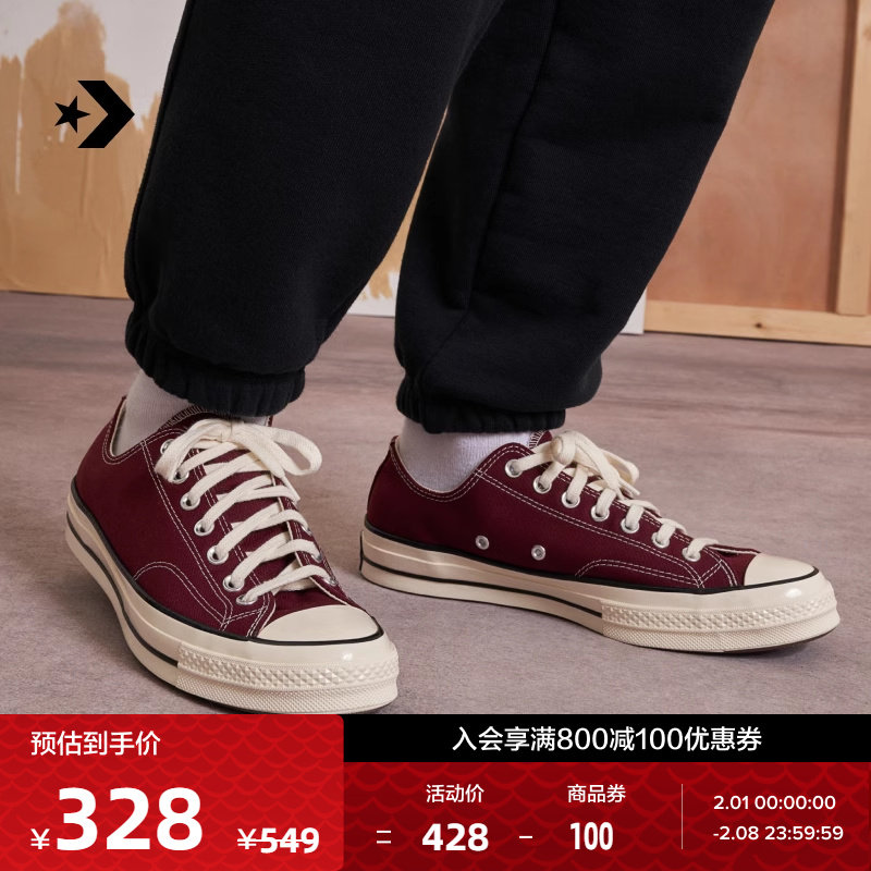 券 100元销量500CONVERSE匡威官方 1970S男女帆布鞋美拉德酒红色深紫红色A01450C