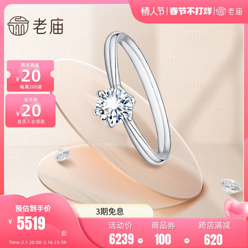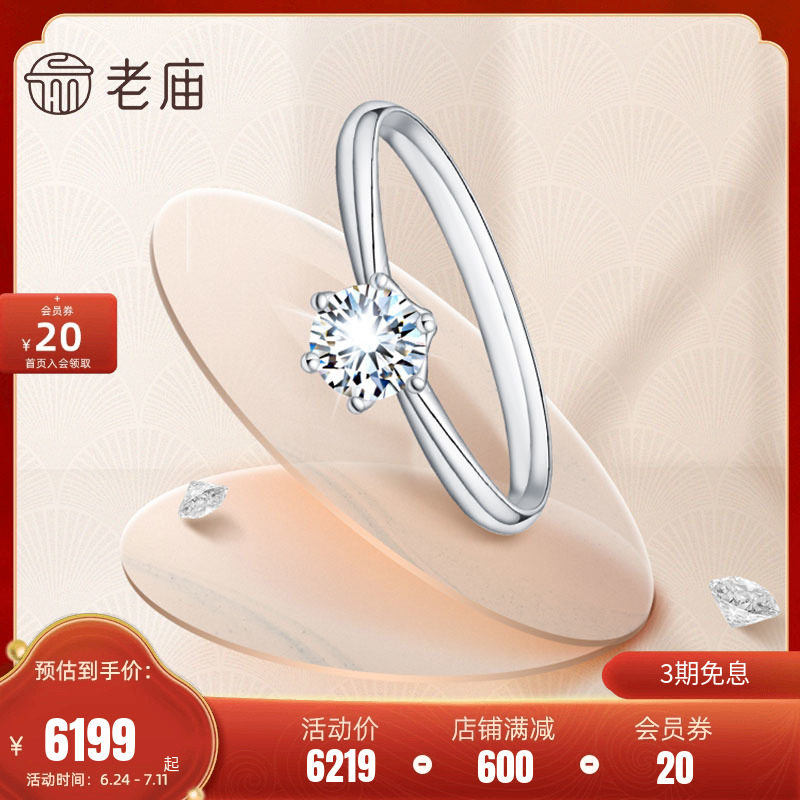 券 50元销量7老庙黄金钻戒18K金钻镶戒指经典六爪钻戒生日正品官方旗舰店
