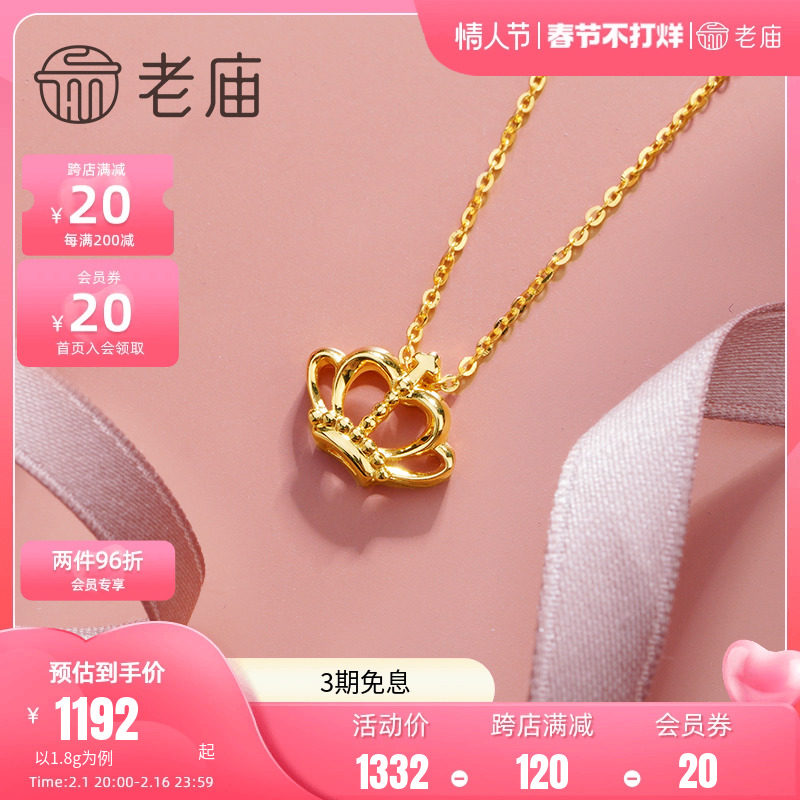 老庙黄金18K金项链皇冠套链吊坠首饰项链在逃公主小众女款礼物