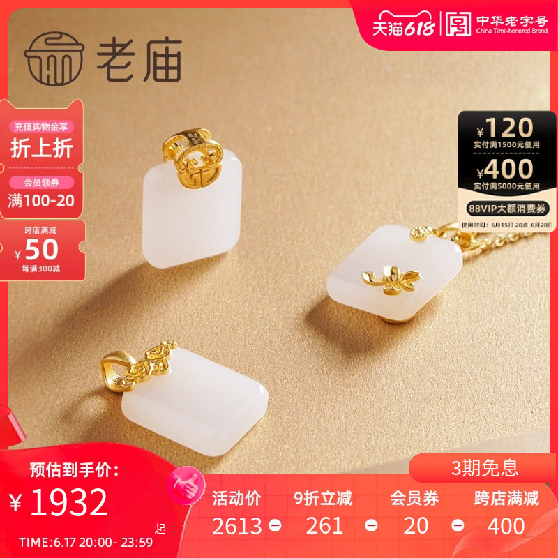 券 20元销量2老庙黄金古韵金镶玉足金宫殿和田玉挂坠吊坠古韵小众设计感