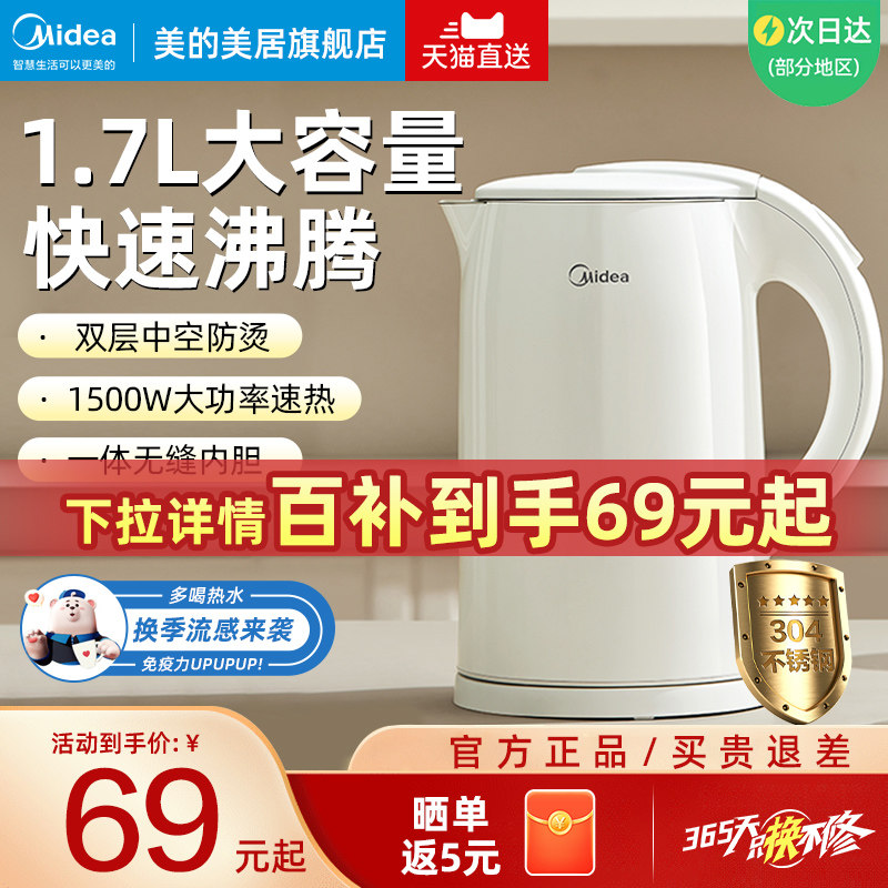 券 750元销量100美的电热水壶家用304不锈钢水壶大容量一体全自动烧水壶自动断电