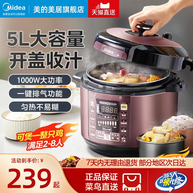 券 70元销量34美的电压力锅家用智能5L双胆电高压锅电饭多功能全自动高压饭煲