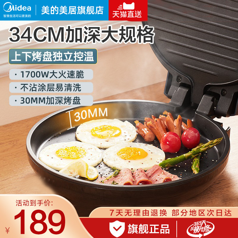券 120元销量26美的电饼铛电饼档家用双面加热烙饼锅不粘加深加大煎饼锅新品深盘