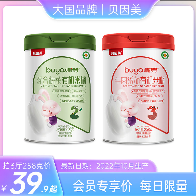 券 30元销量1000贝因美婴儿米糊258g 高铁锌钙6月龄宝宝辅食有机蔬菜原味米粉官网