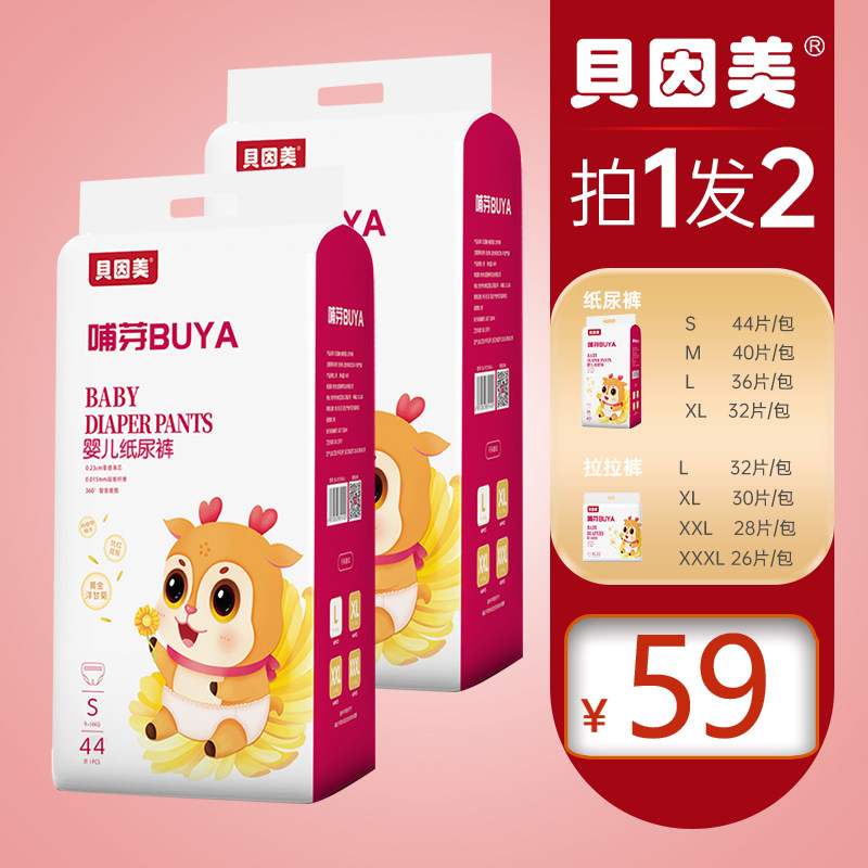 券 30元销量17【拍1发2】贝因美婴儿纸尿裤SM新生儿尿不湿超薄XXXL大码拉拉裤