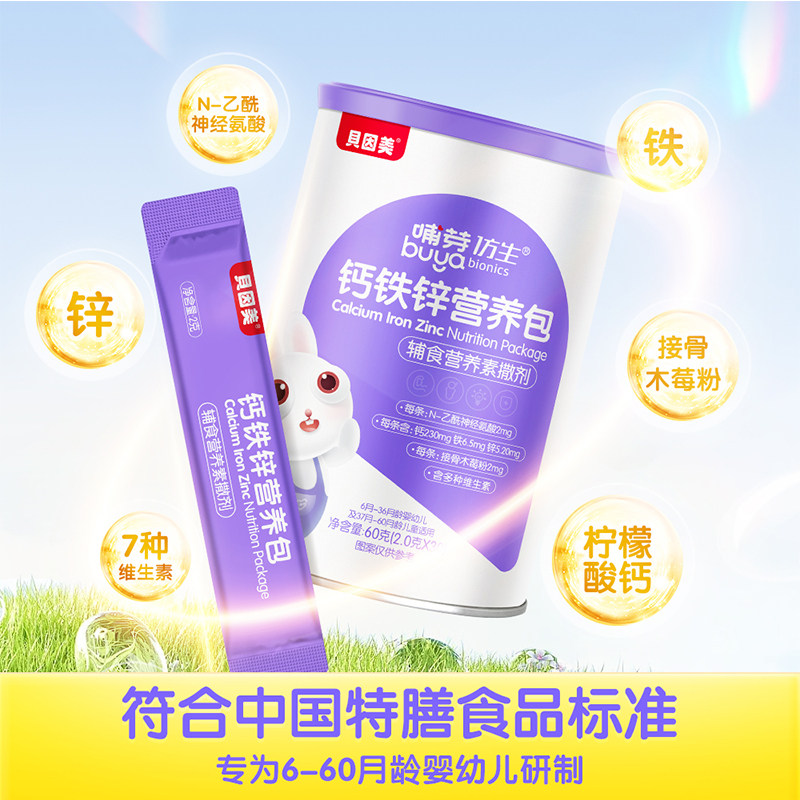 券 40元销量7贝因美哺芽仿生钙铁锌辅食营养包60克(2.0克*30)宝宝婴儿补钙铁锌
