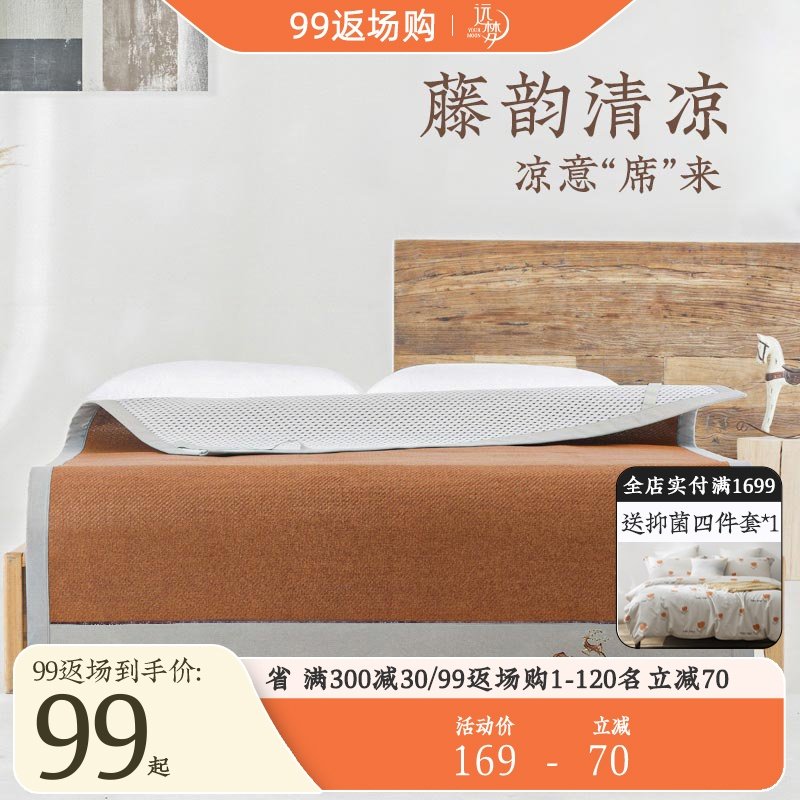 券 105元销量400远梦家纺凉席夏季家用藤席冰丝席雅麻可折叠草席学生宿舍单人席子