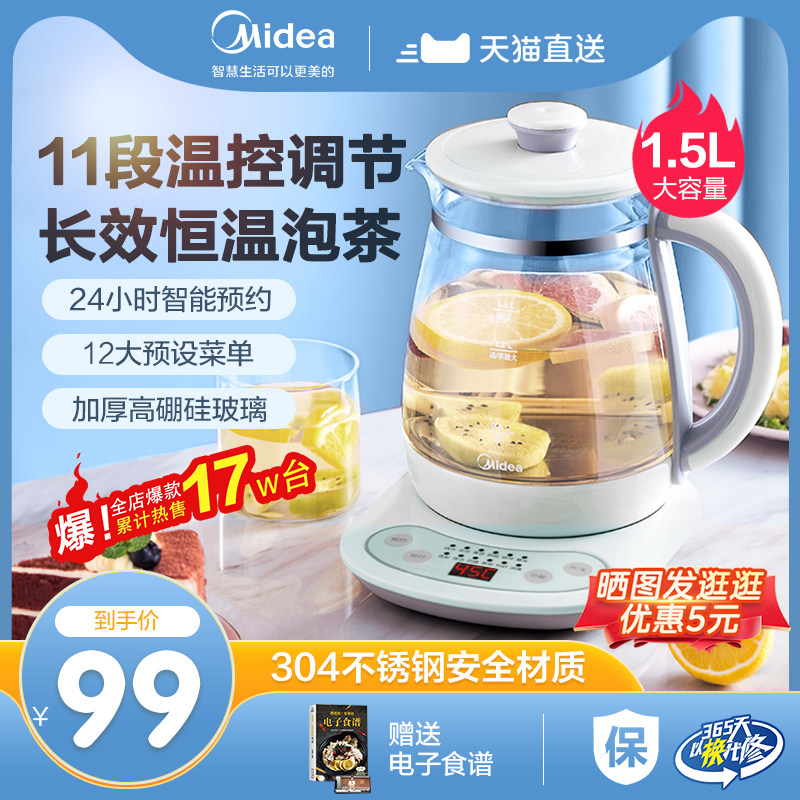 券 280元销量5美的煮茶器喷淋式养生壶多功能家用全自动蒸汽煮茶壶泡茶机电茶炉