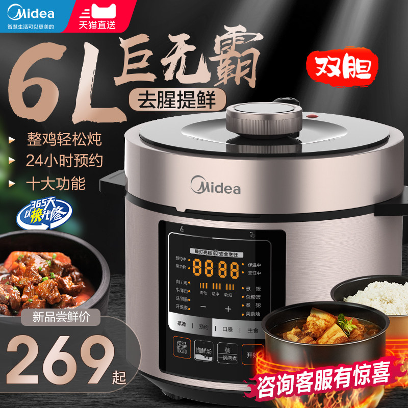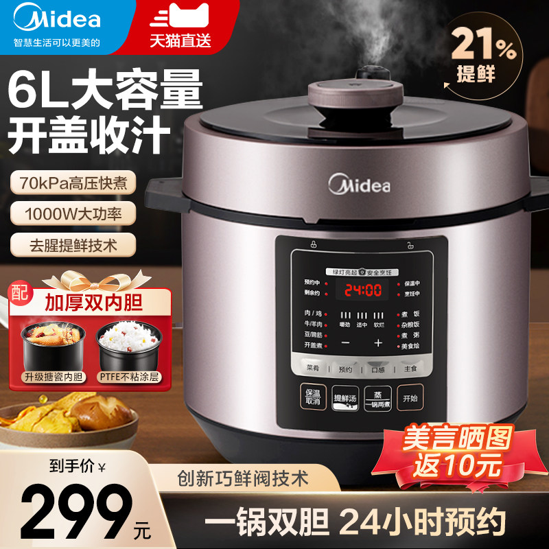 券 150元销量100美的电压力锅家用6L升智能电高压锅饭煲饭锅多功能官方旗舰店正品
