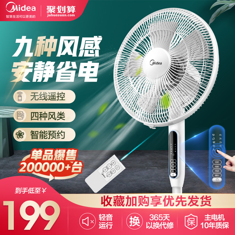 券 190元销量47美的电风扇落地扇家用轻音宿舍立式大风强力电扇台式摇头节能遥控