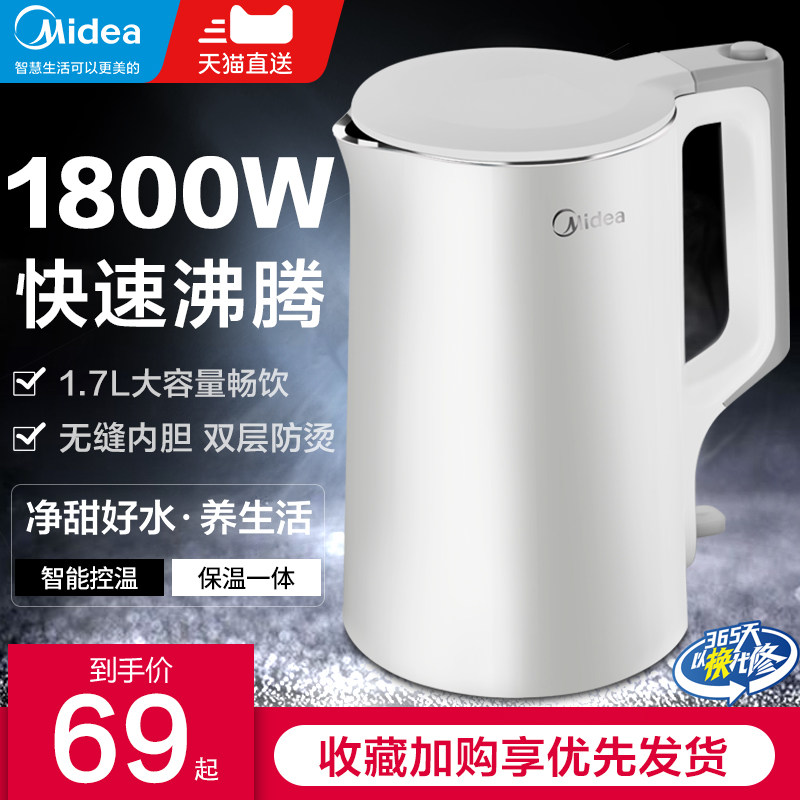 券 30元销量100美的电热水壶家用保温一体自动断电恒温烧水壶不锈钢大容量开水壶
