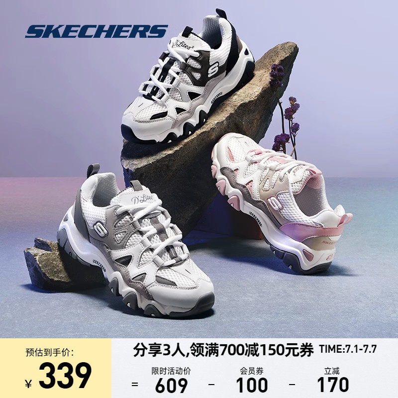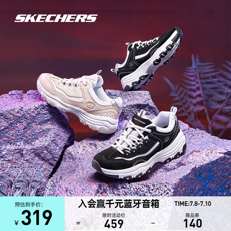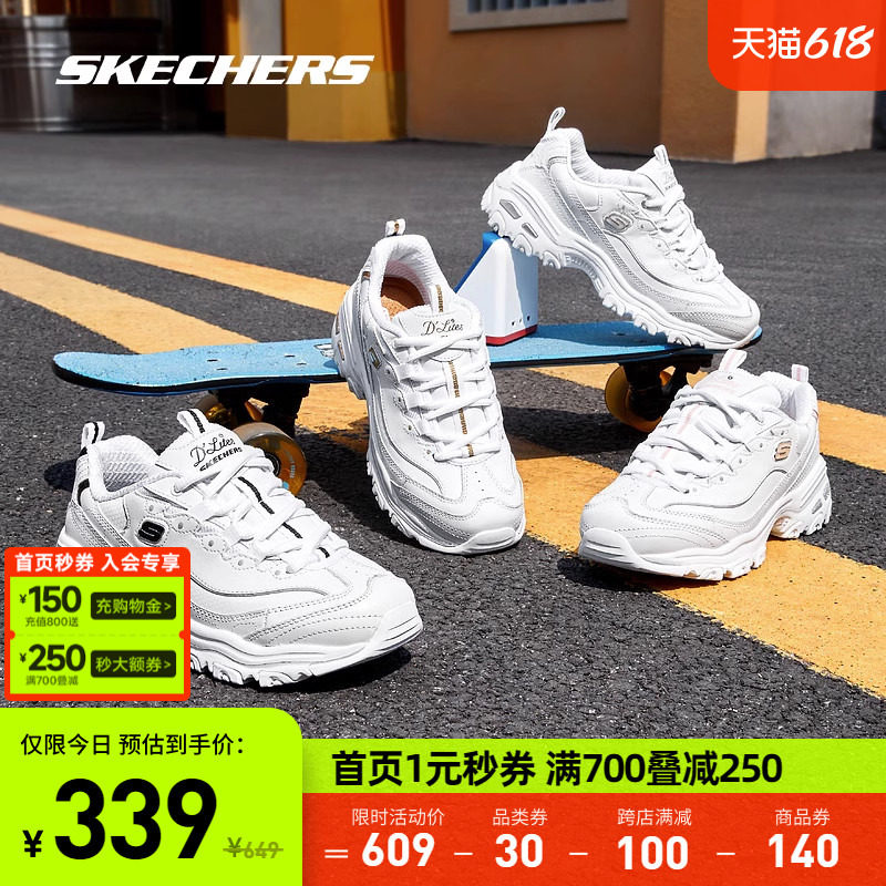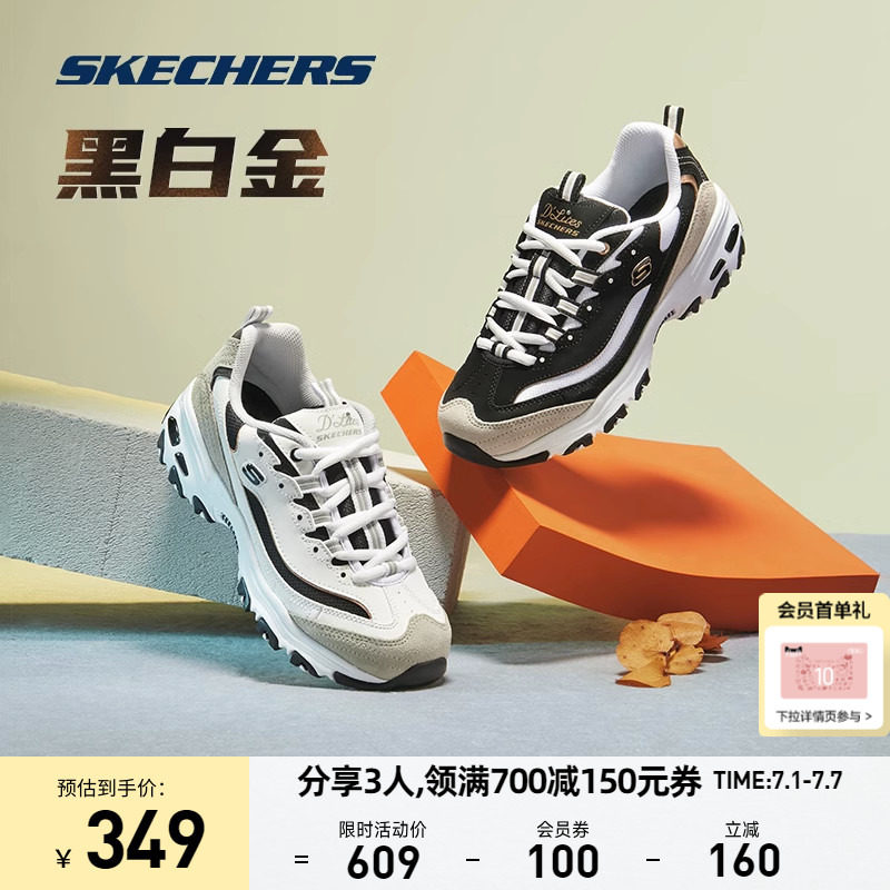 券 140元销量1000Skechers斯凯奇女鞋夏季新款情侣鞋老爹鞋透气增高运动鞋白色男鞋