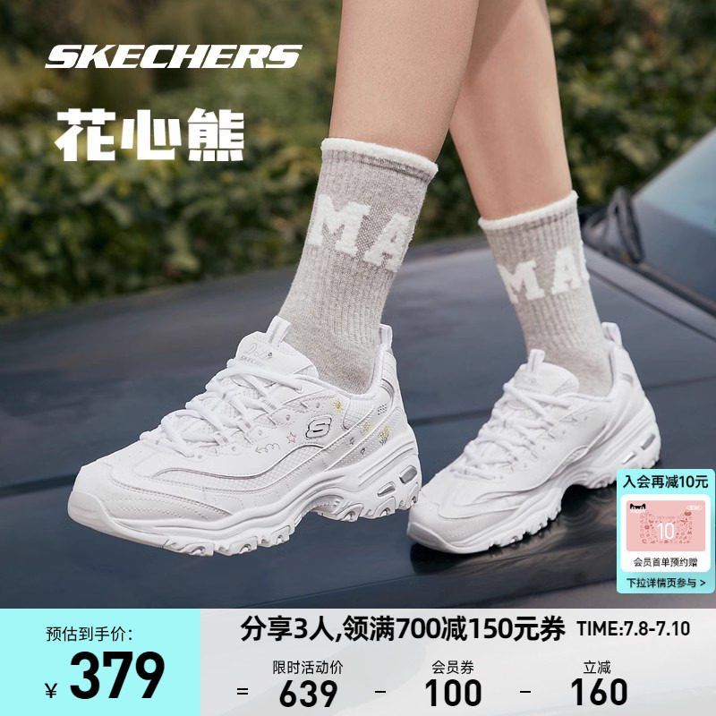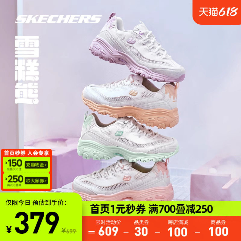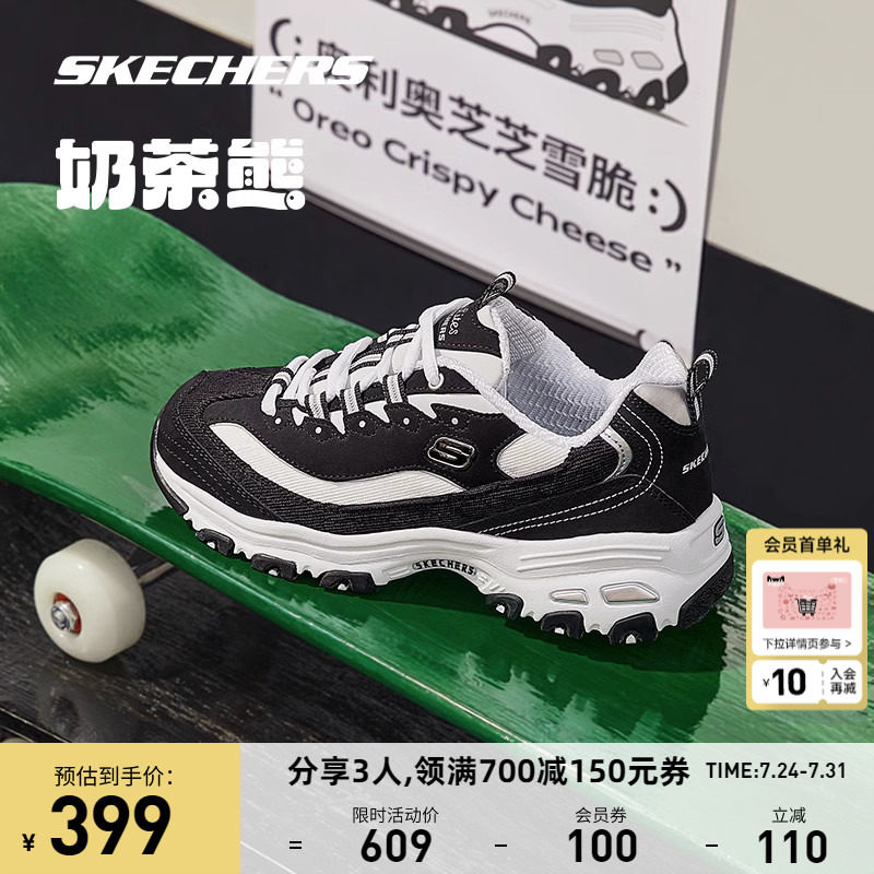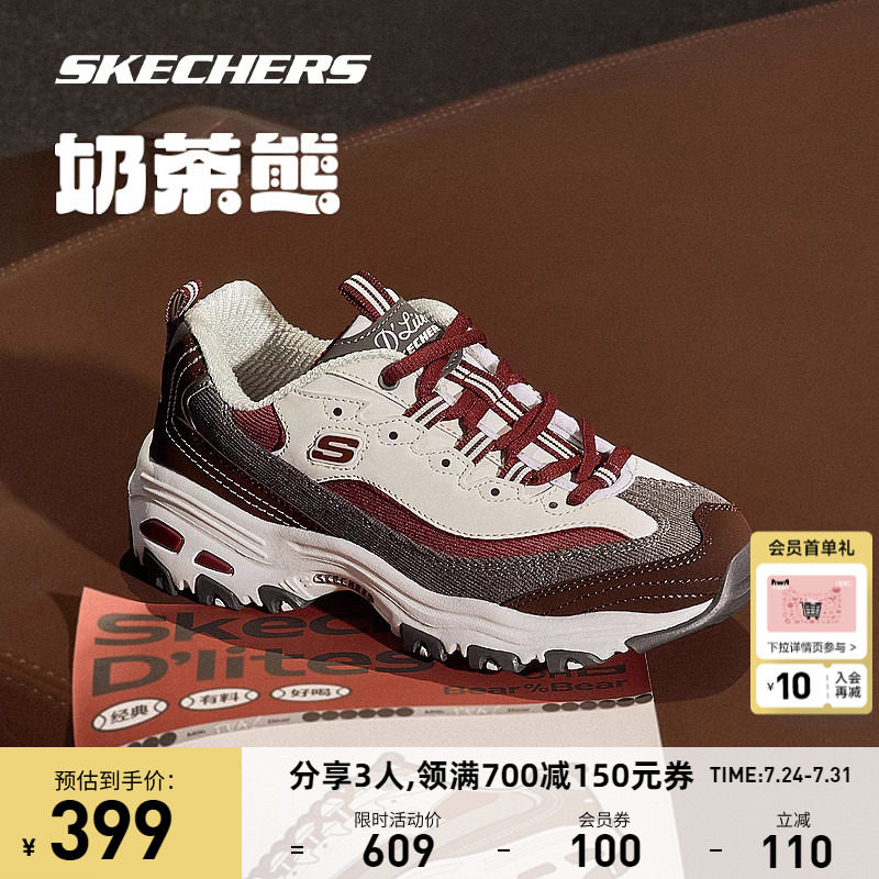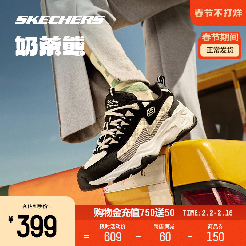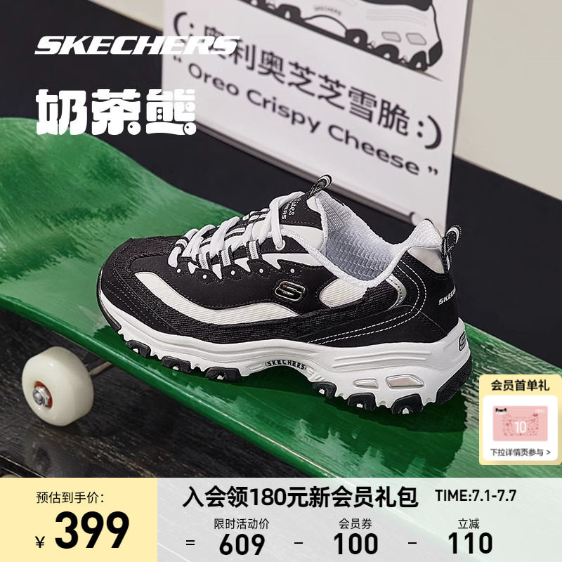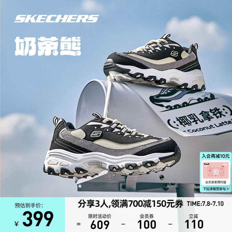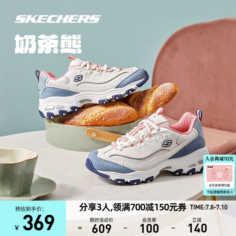 券 100元销量300Skechers斯凯奇奶茶熊芝芝桃桃夏季新款情侣老爹鞋女复古运动鞋男