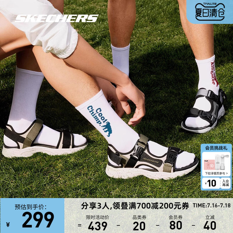 券 80元销量1000Skechers斯凯奇渔夫凉鞋子 2023夏新款STAMINA男复古机甲轻便缓震
