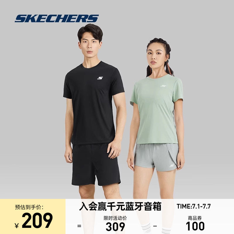 券 100元销量800Skechers斯凯奇2023夏季速干运动套装男女款休闲吸湿透气短袖短裤