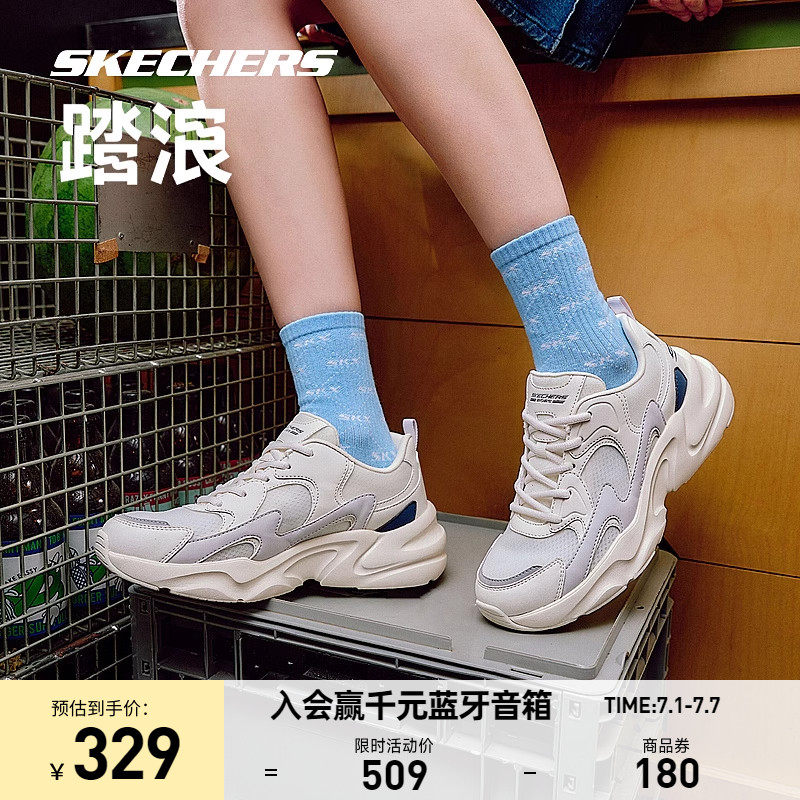 券 180元销量4000Skechers斯凯奇踏浪老爹鞋透气男鞋休闲鞋女2023夏季学院风运动鞋