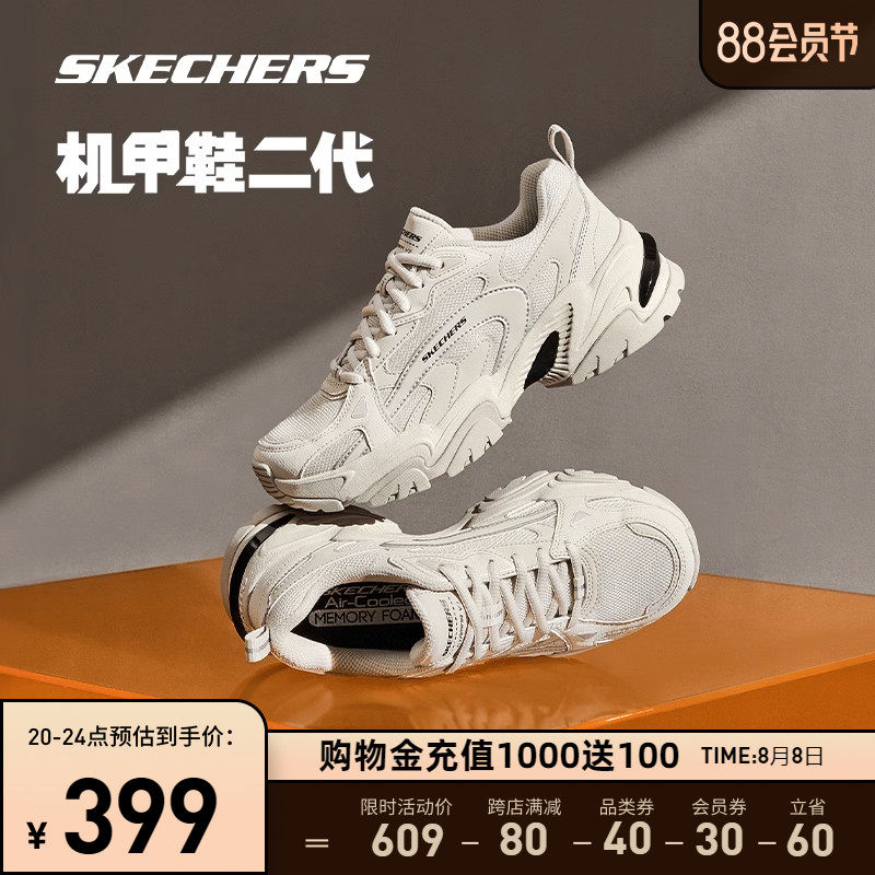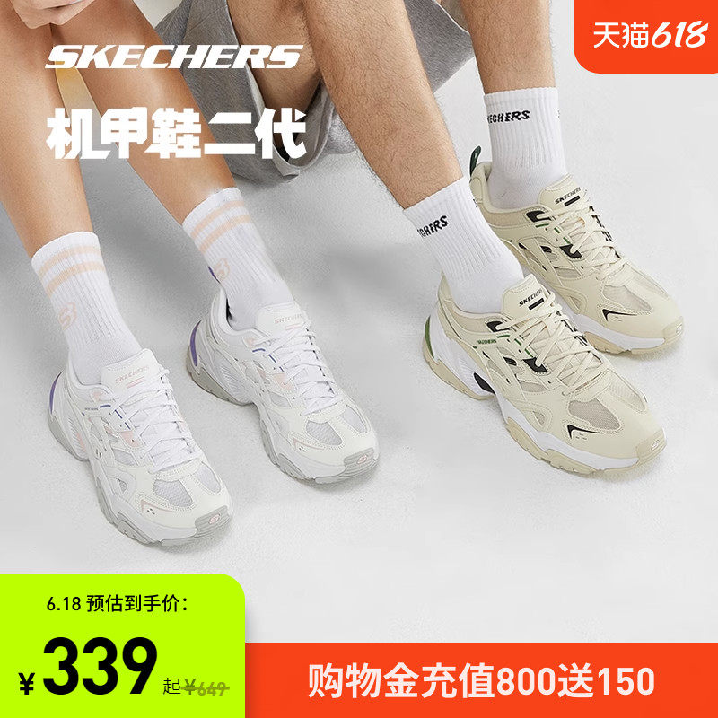 券 100元销量3000Skechers斯凯奇机甲鞋三代2023夏情侣款男鞋运动透气老爹鞋