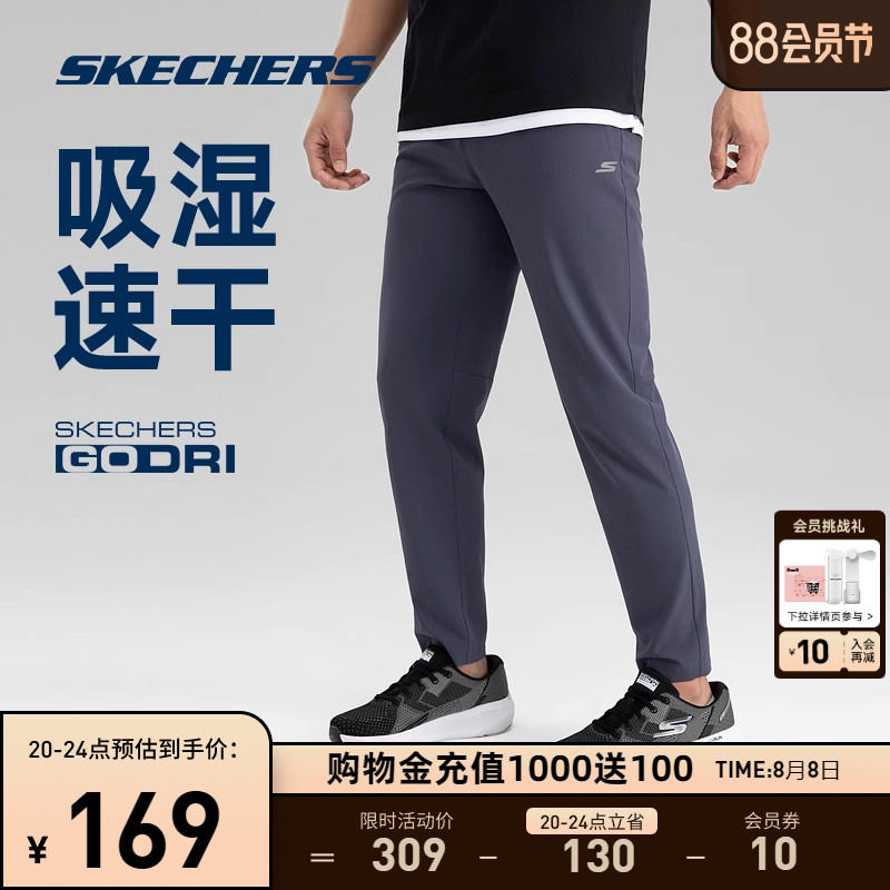 券 140元销量700Skechers斯凯奇速干GODRI健身直筒长裤2023男子运动弹力透气休闲