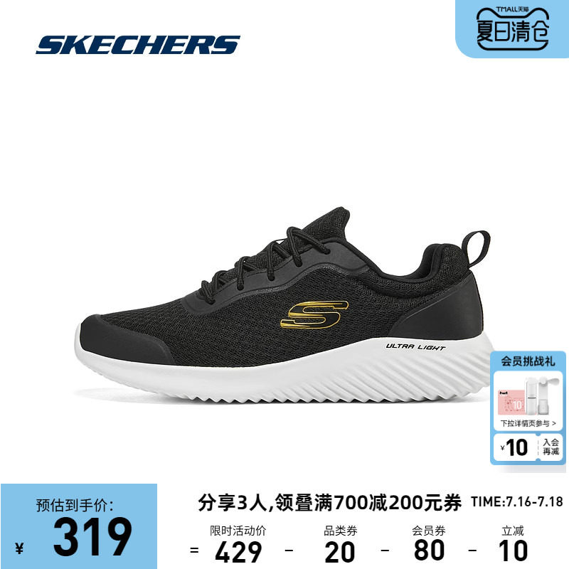 券 80元销量300Skechers斯凯奇2023新款男鞋子黑色休闲鞋绑带休闲透气低帮运动鞋