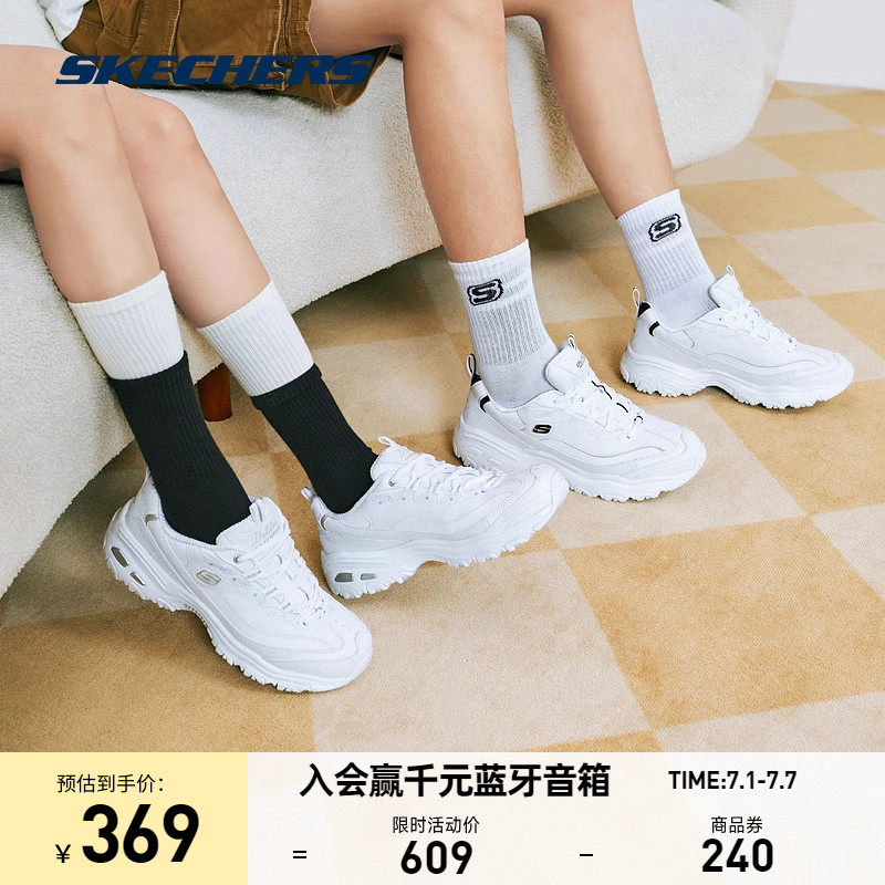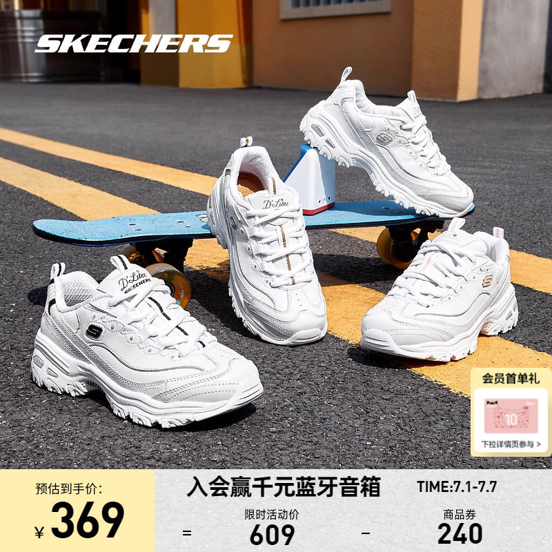 券 240元销量900Skechers斯凯奇女鞋夏季新款情侣鞋老爹鞋透气增高运动鞋白色男鞋