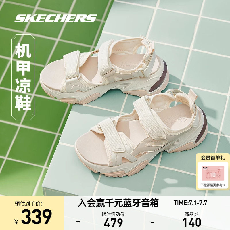 券 140元销量1000斯凯奇小奶熊机甲凉鞋魔术贴2023夏男女鞋子增高厚底运动拖鞋官网