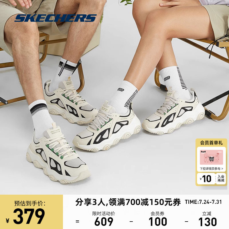 券 240元销量900Skechers斯凯奇情侣老爹鞋小白熊2023夏男女鞋百搭休闲运动鞋子