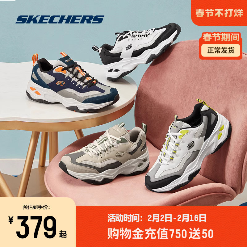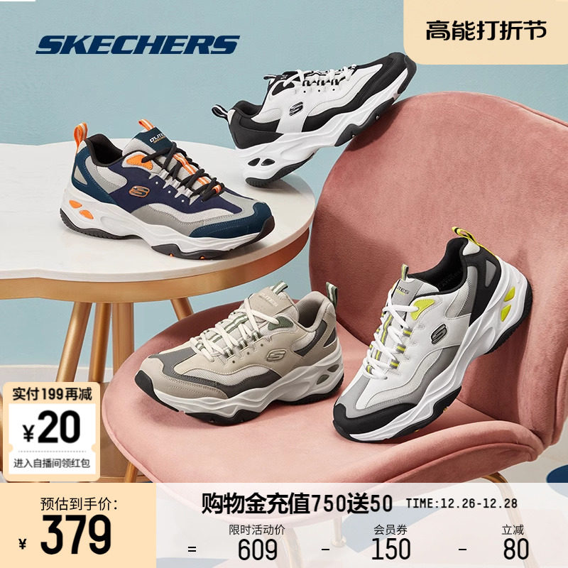 券 150元销量1000Skechers斯凯奇冬季男鞋复古黑白灰熊猫鞋运动鞋情侣鞋增高老爹鞋