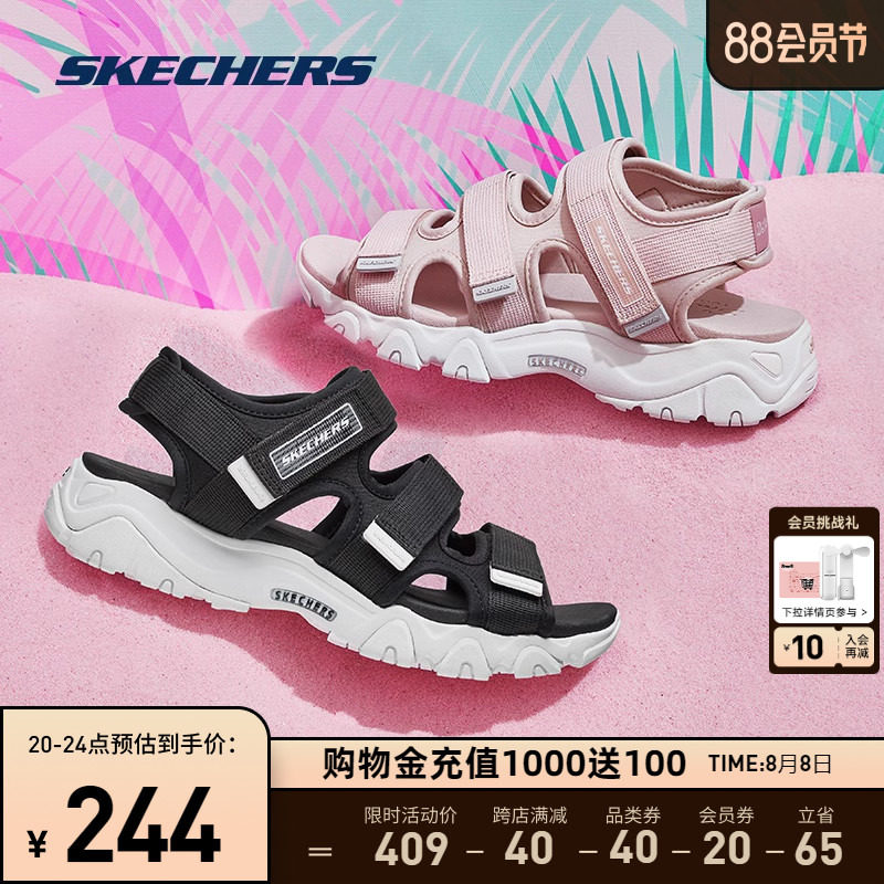券 170元销量800Skechers斯凯奇2023夏季女鞋熊猫凉鞋运动厚底增高魔术贴沙滩鞋子