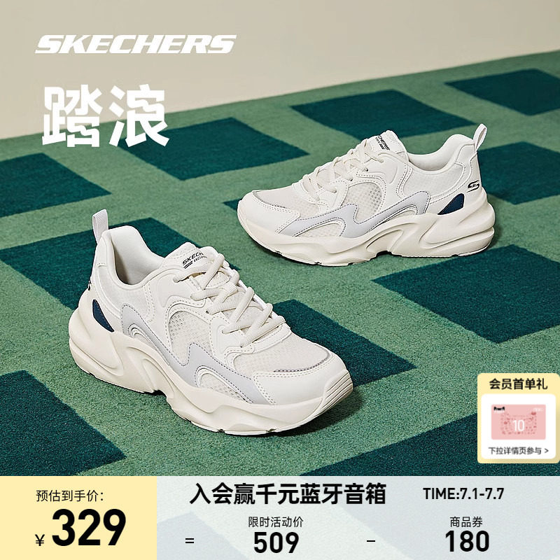 券 180元销量2000Skechers斯凯奇踏浪老爹鞋透气男鞋休闲鞋女2023夏季学院风运动鞋